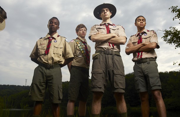 At a time when the organization said it is reconsidering its policy barring openly gay people, but last month said they’d put off the decision until May, here comes a show where grown men who regret not having reached eagle status hope to compete with actual teen Eagle scouts on a series of wilderness challenges, marked with badges (homophobia is not one of them).