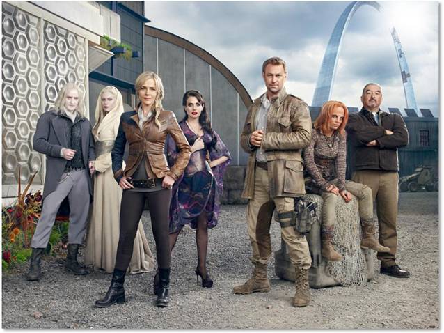 As it is, “Defiance” (Syfy, 9 p.m.) took five years to get together. It involves an Earth 30 years hence, after aliens have invaded and are now coexisting with Earthlings and its ravaged landscape, particularly a St. Louis setting where the Gateway Arch has been damaged as well. Most of the action of the actual game, meanwhile, has to do with the West Coast. Julie Benz, Graham Greene and Mia Kirshner are among those who were enlisted into the ambitious sounding series whose only goal may be to be as cool as an online game.