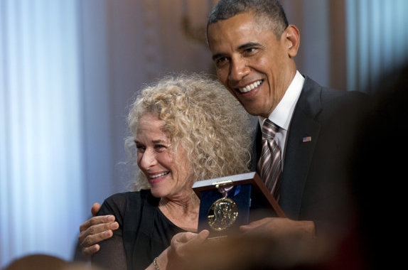 The event, held last week in the West Wing, allows the singer songwriter with a 50 year career to sit between President Obama and Vice President Biden as a host of performers do her songs, including James Taylor, Billy Joel, Emeli Sande, Trisha Yearwood, Gloria Estefan and Jesse McCartney. And then she does a tune as well.