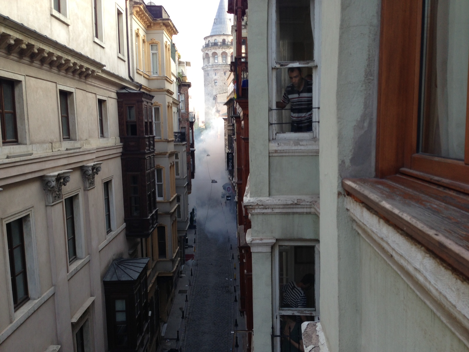 Back on lstanbul’s docks late in the afternoon, it was clear things had changed. The gas masks we thought were being sold for novelty Saturday were clearly being snapped up for practical use. Also: Swim goggles and hard hats. The closer we climbed the hill to the landmark Galata Tower where we were staying, the more people we saw with gas masks around their necks.