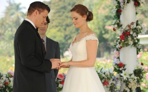 bones-905-woman-in-white-fox-booth-brennan-weddingFor those who think the relief of sexual tension between bantering coworkers spells the end of a TV show, we give you the long awaited wedding on “Bones” (Fox, 8 p.m.) between Seeley Booth and Temperance Brennan.