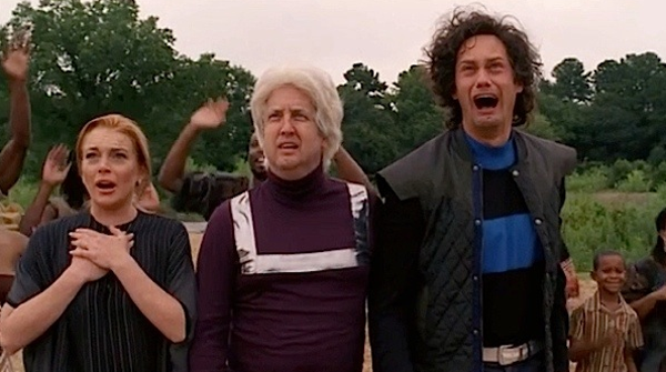 He makes a successful film about his life, the kids grow up, and the daughter grows up to be Lindsay Lohan (or played by her, in the show’s second surprise cameo). His wife April (done so well and expressively by Katy Mixon) is shot in a random mugging, turning Kenny into a homeless drug addict. Once out of rehab, though, he moves to Africa (in a futuristic hovercraft), marries a native woman there, has a bunch more kids and becomes a respected member of a tribe. And with a foot-long grey beard, Kenny dies one blissful day in Africa.