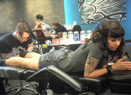 “Tattoo Titans” (CMT, 11 p.m.) is the latest and maybe third tattoo artist competition, organized as if it’s “Project Runway” or the current incarnation, “Project Runway: Under the Gunn” (Lifetime, 9 p.m.). The difference is that the tattoo artists vying for their $10,000 prize have to use actual skin of volunteers to show their skills. Those doing bad work get eliminated, but what about the people who have to walk around with bad ink the rest of their lives? Also, they have to hear the judgment from people with neck tattoos, whose judgement therefore is already immediately suspect.