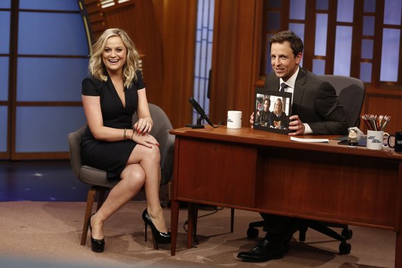 Rather than go for the huge name as first guest (Fallon, disastrously, went for De Niro on his first “Late Night”), Meyers went for comfort food: his old pal and co-anchor Amy Poehler, whom she reported, he talks to every day. Friends don’t make the best interviews — they laugh too hard at inside stuff nobody else gets, and there wasn’t a whole lot to get out of Amy (though she broke the news that “Broad City,” which she produces, will get a second season on Comedy Central).