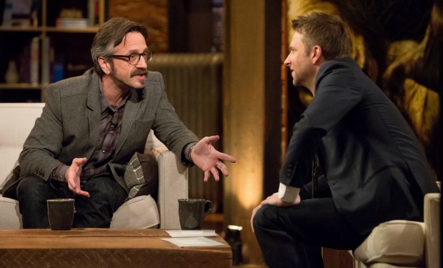 This gives the opportunity to used a lot of other comics including, in the premiere, Sarah Silverman. But he goes a little further, getting himself booked on “The Walking Dead” aftershow, “The Talking Dead” with Michael Ian Black and the omnipresent Chris Hardwick (the two appeared together on his “@Midnight” (Comedy Central, midnight) just last night. But here, the idea is that Hardiwick can’t stand him and treats him poorly on the show. Which he kind of deserves, since he doesn’t know a thing about the “Talking Dead” and proceeds to take down the series in a series of questions.