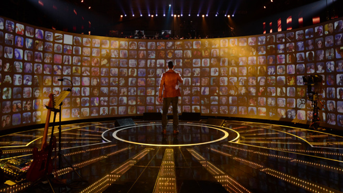 driven crowd appreciation that results in instant voting — faces of those voting yes flash on a screen, if enough of them are on there, a 70 percent affirmative rate, a big screen will raise, indicating the singer will advance.