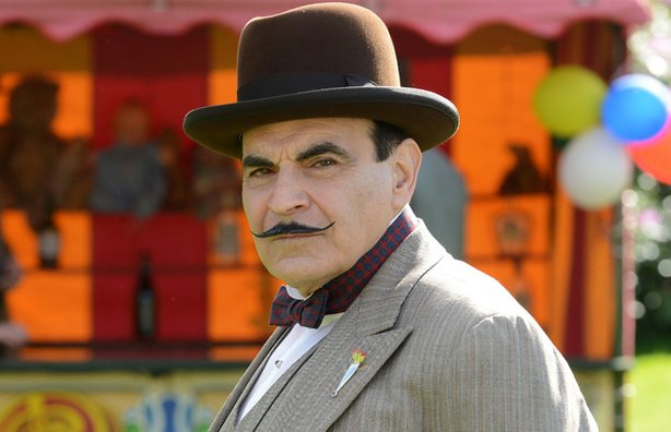 Say farewell to David Suchet, doing his final five episodes as Agatha Christie’s great detective Hercule Poirot on “Masterpiece Mystery!” (PBS, 9 p.m., check local listings. In the first he investigates the murder of a Russian chess master.