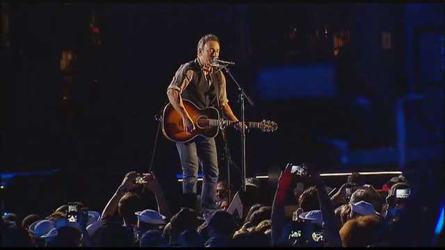 Springsteen would seem to be the biggest draw, from his years of filling stadia worldwide. But here, he played a set with acoustic guitar, as if he were at one of those Obama campaign acoustic stops. That meant that “The Promised Land,” as great of a song as that is, honestly didn’t sound quite as good on acoustic guitar; the reworked swampy “Born in the USA,” minus a chorus people would only sing along to (and misinterpret) fitting but strictly nonmusical, and “Dancing in the Dark” just weird in a folk version.