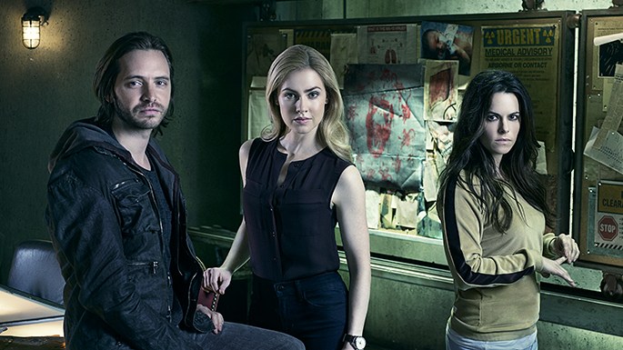 The 1995 Bruce Willis film from Terry Gilliam is remade as a new series in “12 Monkeys” (Syfy, 9 p.m.) in which Aaron Stanford stars as a sick man from a diseased, post-apocalyptic future, returning to the present to try and eradicate its origin.