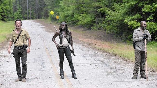 “The Walking Dead” (AMC, 9 p.m.) swings back for its sixth season, its numbers strong if its zombies are limping. The focus returns to zombies for the 90-minute premiere, focused primarily in systematically trying to clear them out while in Alexandria. It’s all obsessed over later on “Talking Dead” (AMC, 10:30 p.m.).