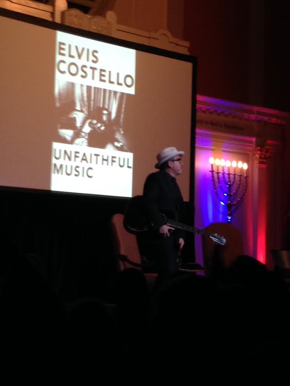 Costello, in a black suit and tie topped with a white Stetson, strolled through the pews of the ornate former synagogue turned cultural center, Sixth & I, several days later for a conversation about his book, “Unfaithful Music & Disappearing Ink.”