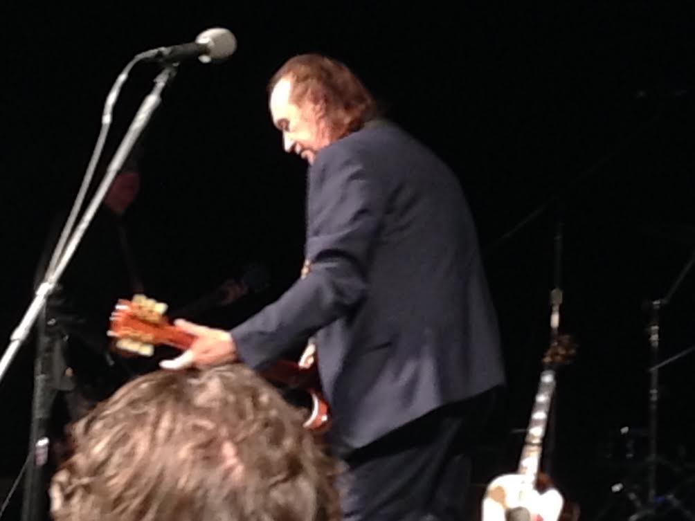 Armed with an acoustic guitar midshow he was able to turn up some touching moments, such as trying his way through the requested “This Man He Weeps Tonight,” which he said the band did not practice, and “Young and Innocent Days,” which they did.