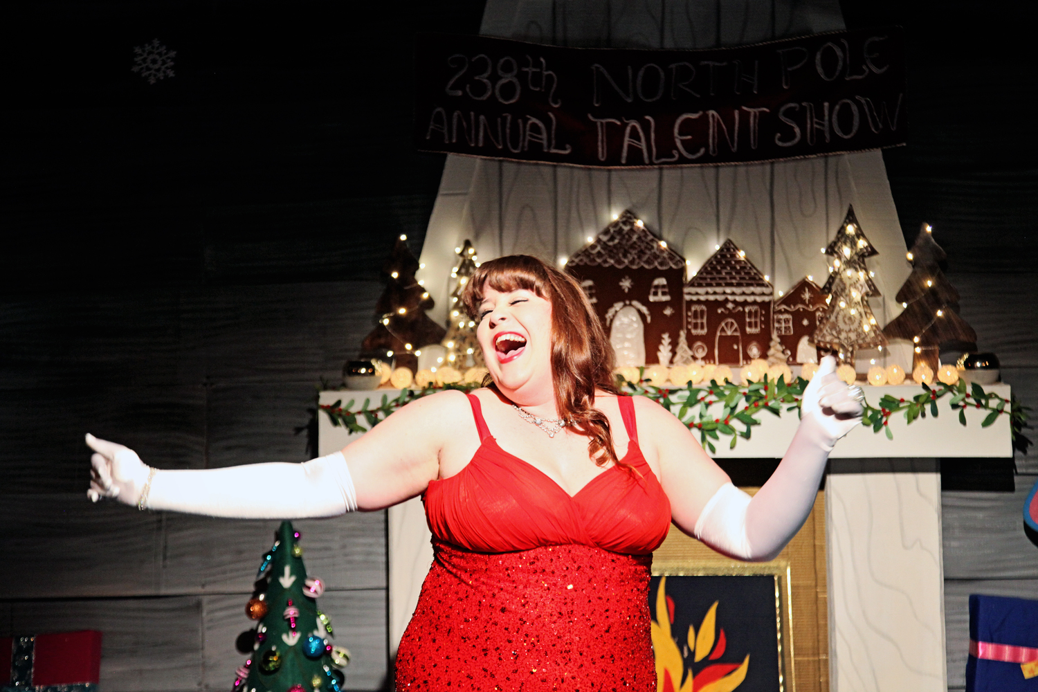 What there seems to be more of than anything else, oddly, is juggling. The elf played by Daniel Riker, using existing skills (and much the same patter) certainly fits the talent show format. But it may be a reflection of the rest of the show that he has to come out to juggle three different times. Even though he graduates from balls to clubs to much more dangerous knifes, you sort of wish it were fire instead (then again, in this small of a setting, maybe not).