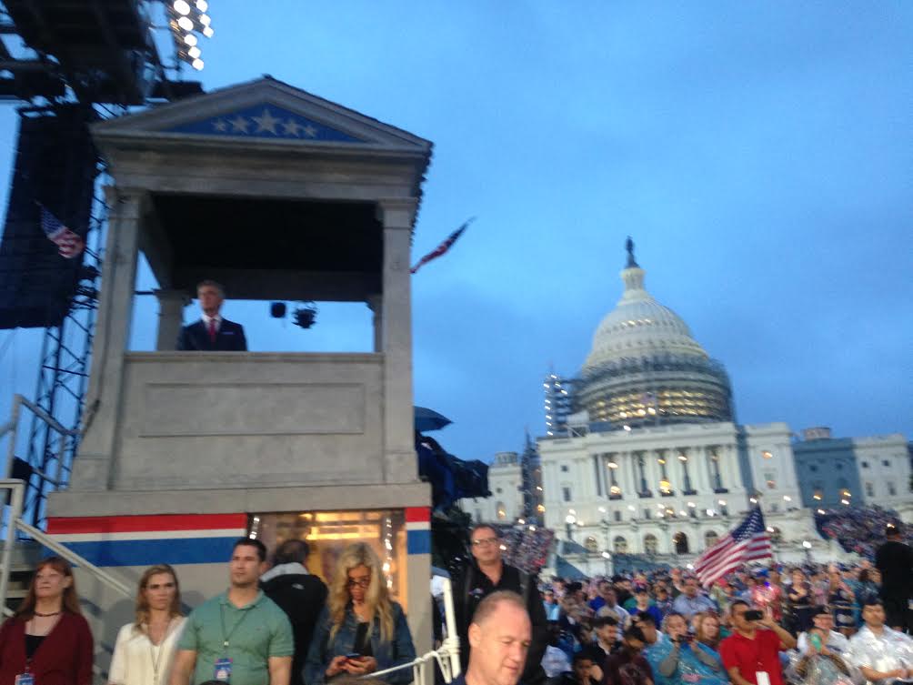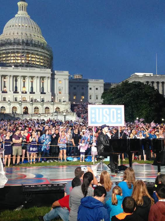 Amber Riley was from TV (“Glee”) but not a reality show. She had to Pointer Sister, though in trying to get the crowd moving to “I’m So Excited.” Gavin McGraw may have had the best optics of night, singing one of his own songs to salute the USO from a small stage behind me, the capitol building and the bulk of the crowd behind him.