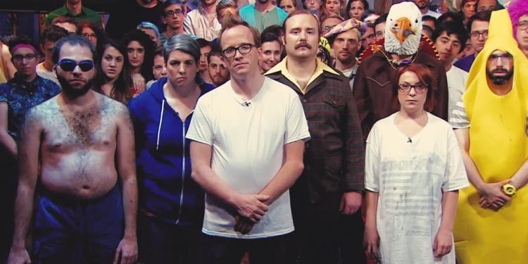 To prove it, he brought his co-host Shannon O’Neill, who, like him, is a grad of the Upstanding Citizens Brigade, along with their announcer Murph and a guy in a Hawaiian shirt in character called Vacation Jason.