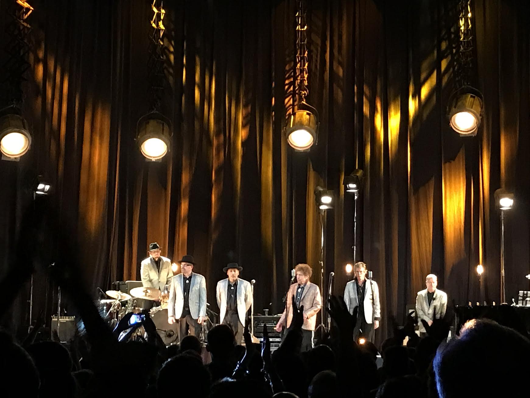I’m not complaining. But it is an adjustment to hear the old favorite “Tangled Up in Blue,” after years as a guitar-led tune in concert, as a 50s style countrypolitan song with a peppier pace, and led now by piano and pedal steel (which, like the fiddle, and eventual mandolin and banjo in other songs, were handled by the indispensable Donnie Herron).