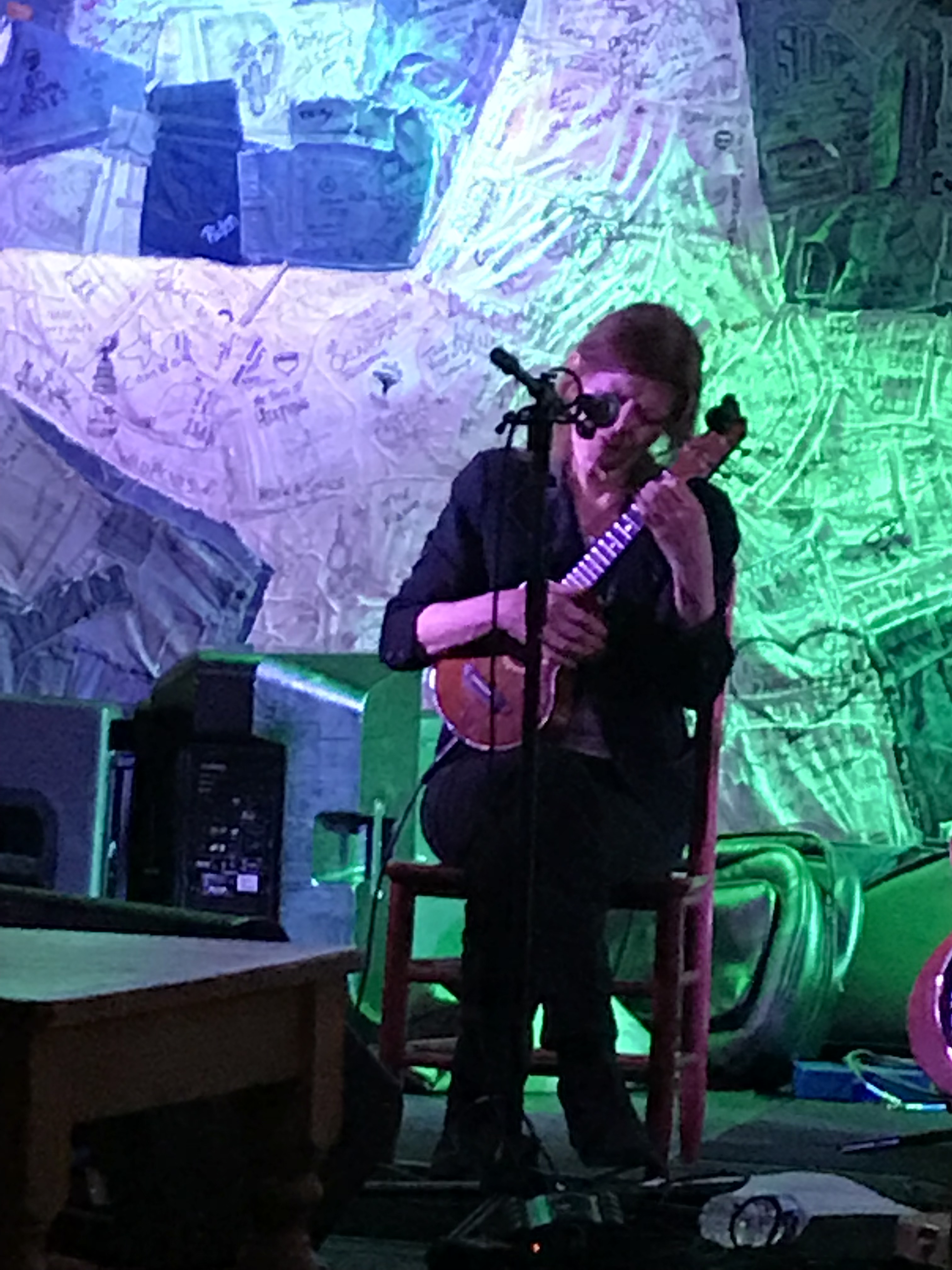 She accompanies her light, melodic voice with ukulele – giving an instant buoyancy to songs that are often less than that. She arranged the tour so that a local musician would join her at each stop. In D.C., though the planned Benjamin Schurr of Br’er begged off at the last minute.