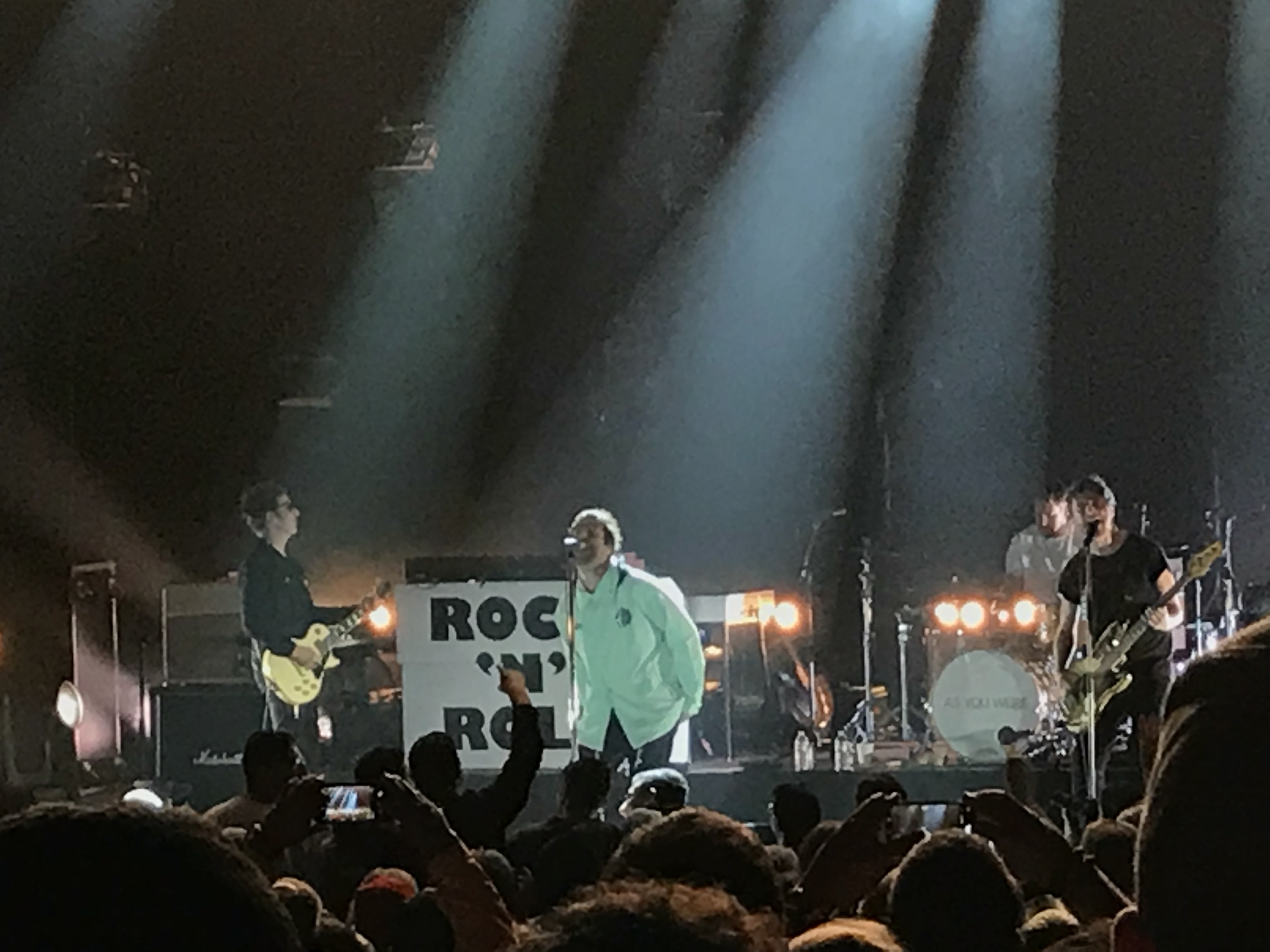 As in Oasis, the backing musicians are generally ignored. Liam’s five piece were never introduced, but kept churning up the sounds admirably. They included Jay Mehler on lead guitar, Drew McConnell on bass, Mike Moore on rhythm guitar, Dan McDougall on drums and Christian Madden on keyboards, behind a big sign for anyone who didn’t get the picture, saying Rock ’N’ Roll in cartoonishly large letters.