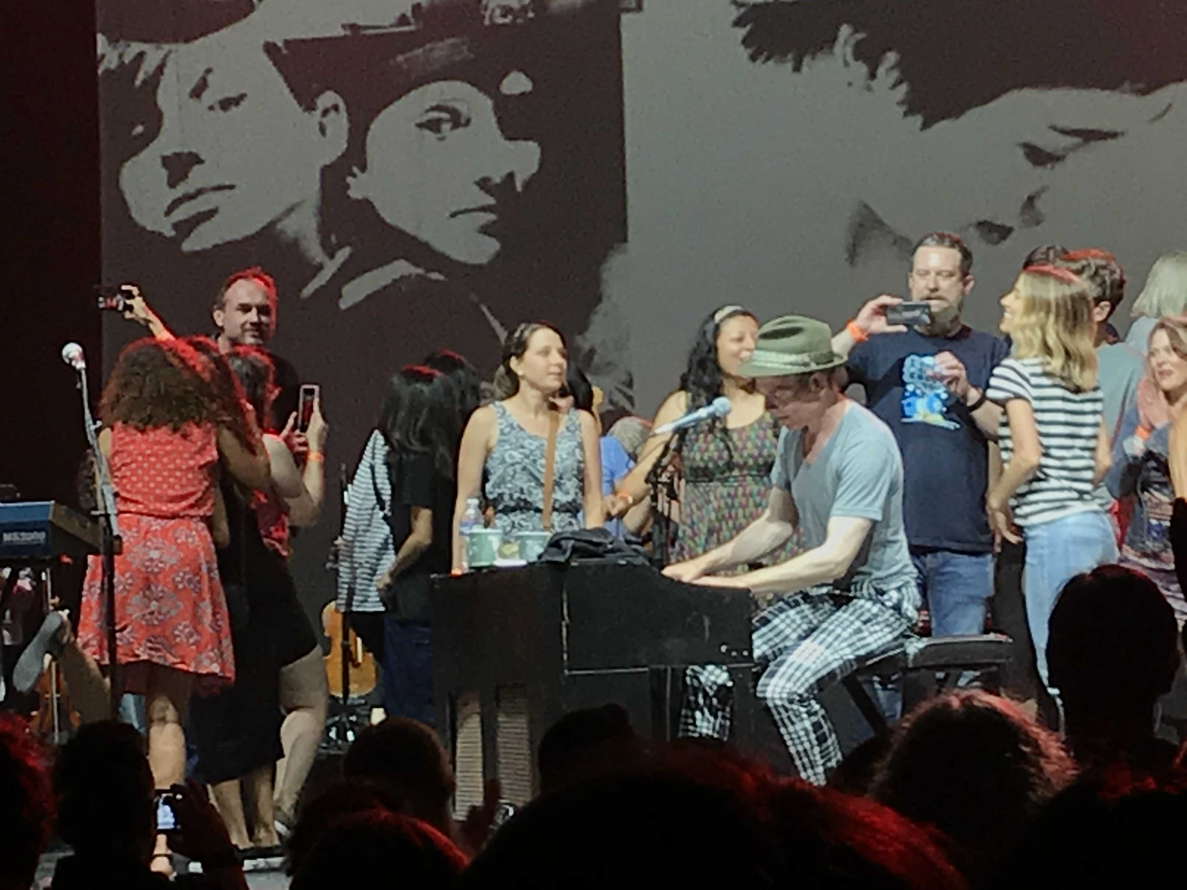 The invitation to join the band onstage was part of Belle and Sebastian’s appeal, reflecting stories of regular people in their detailed songs, and more often than not projecting pictures of everyday people behind them amid other projected patterns and geometric designs.
