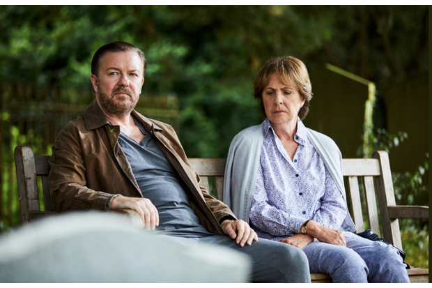 In his latest series, “After Life” (Netflix, streaming), Ricky Gervais stars as a grumpy misanthrope contemplating suicide after his wife dies. Alternately acerbically funny and heartbreaking, it provides a good outlet for his scathing and dark wit. Some of his co-stars from past series join him, including Kerry Godliman, David Earl, Ashley Jensen and Diane Morgan.