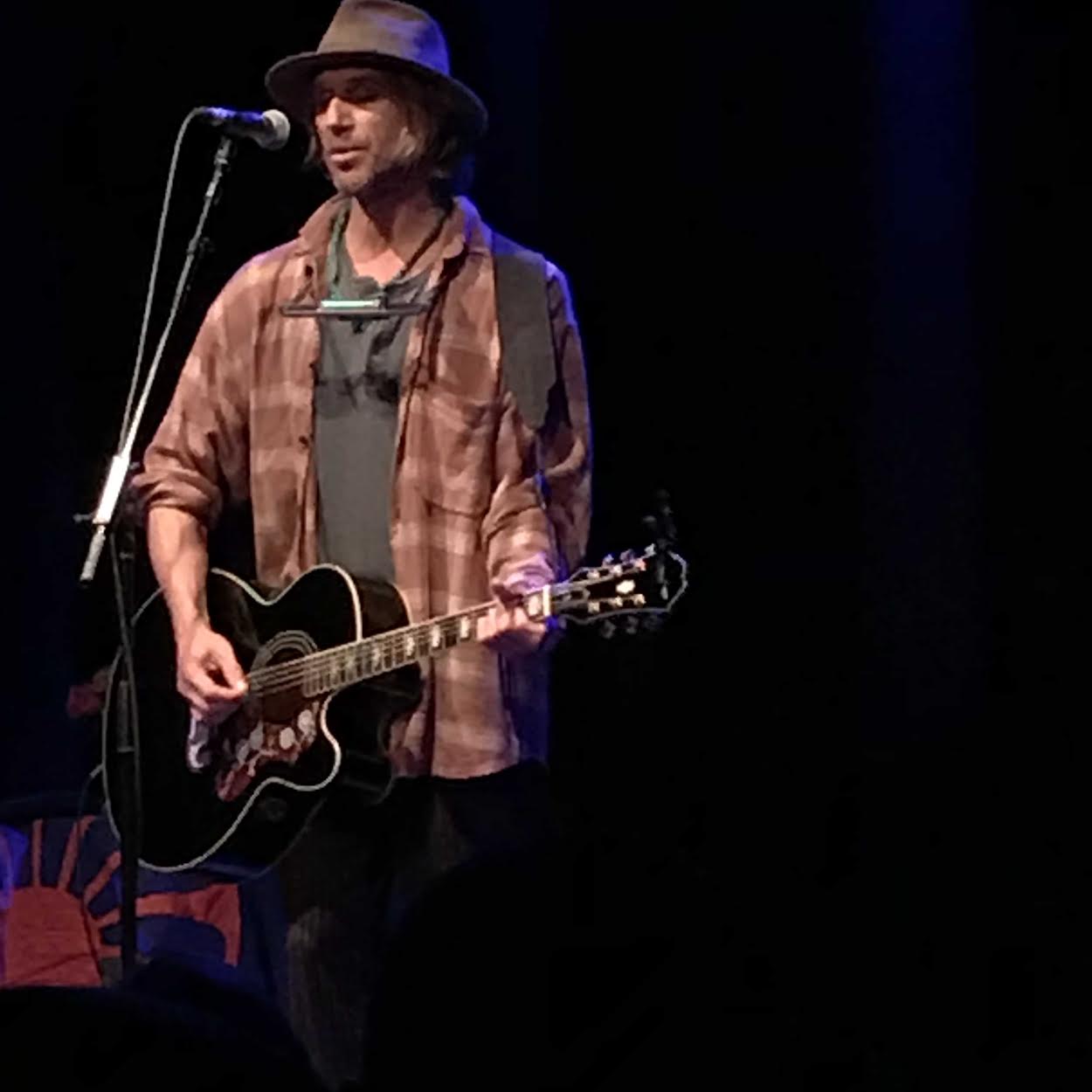 Todd Snider walks on stage in goofy hat, trusty guitar, barefoot but also with his equally raggedy dog, Cowboy Jim, who promptly lies down and listens to these songs and stories one more time.
