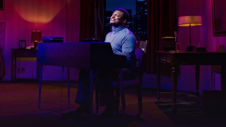 Although his voice does not have the exact smooth timbre of his subject, Roston has strong pipes and apparently adept at the electric keyboard in his room (he’s backed by other instruments, which are on recorded tracks, that necessarily stilt the performances the way canned music does).