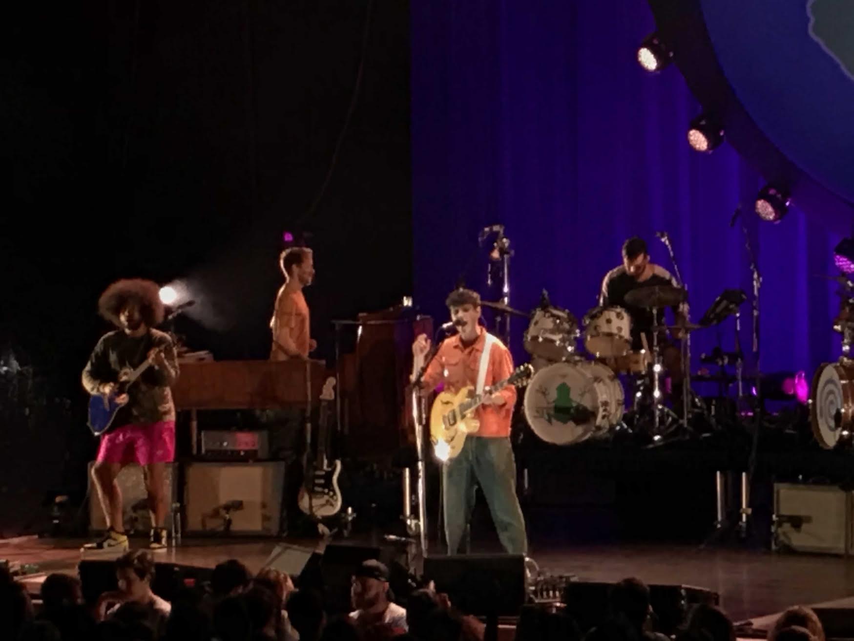 Koenig said something about having more voices on the new album, but it’s more obvious than ever in a live setting that he is the band’s center. Morgan came down from her guitar and keyboard perch to sing a verse of just one song all night. There was surprising little vocal support from the others onstage; the big choral moments were provided via sample. More collaborative was the guitar work of Jones, who in his shorts and big Afro resembled Reggie Watts on stage, eking out electronic tones from his treated guitar.